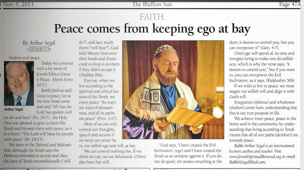 JEWISH SPIRITUAL RENEWAL: GREAT IS PEACE : BLUFFTON SUN: RABBI ARTHUR SEGAL